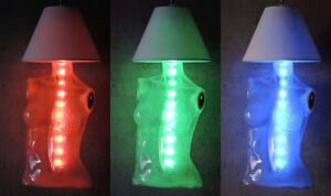 A continuing series of LED lighting designs created from recycled materials. (2018<)